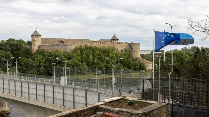 Blick vom estnischen Narva auf die Festung im russischen Iwangorod